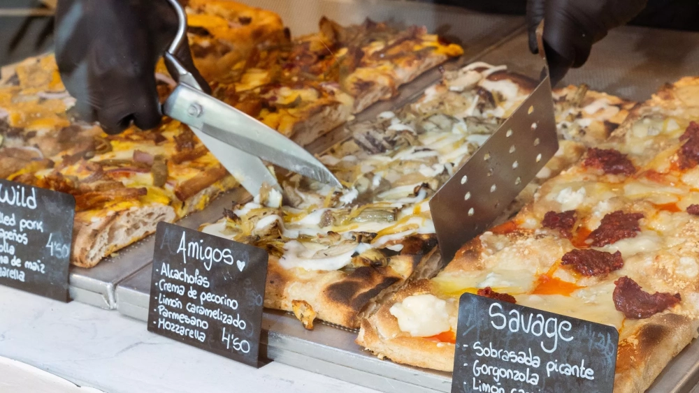 Utilizan una masa madre con una hidratación del 90%, "lo que hace que se sienta muy crujiente y delicada, sin perder consistencia". Así consiguen una pizza más ligera y digerible, que los diferencia de otras propuestas al taglio que encontramos en la ciudad. "La clave es la hidratación y trabajar con harinas e ingredientes premium a la hora de hacer la masa", recalcan.