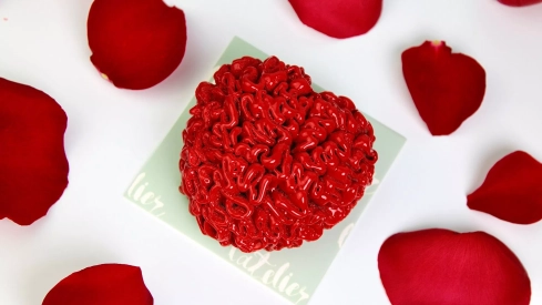 Acudir a L’Atelier Barcelona en San Valentín es siempre un acierto. Este año Eric Ortuño y su equipo han preparado una carta dulce inspirada en el chocolate, la frambuesa y la flor de hibisco. Entre las creaciones que la componen destacan el pastel Grand Love y el individual Mon Cœur de Chocolat, con mousse de chocolate 70% cacao con caramelo, compota de frambuesa y crujiente de avellanas.
