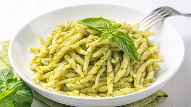 Esta salsa originaria de Italia está hecha con albahaca, aceite, piñones y ajo molidos. Aguanta un periodo de tiempo muy corto y siempre dentro del refrigerador, tanto antes de abrirse como después. Cerrado puede durar hasta seis meses, pero abierto solo tres días. Es un acompañamiento idóneo para pastas, como lasañas, macarrones o espaguetis.