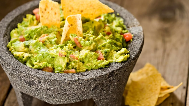 Es la salsa por excelencia de la comida mexicana. Elaborada con aguacate, chile verde, tomate, cebolla y lima es ideal para acompañar una fajita, un burrito o unos nachos y aportarles un toque picante a la vez que fresco.