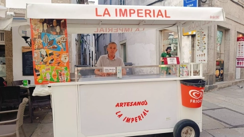 Más de medio siglo, que se dice pronto, lleva Manolo Prieto con su locomotora de castañas en los meses fríos y su carrito de helados caseros cuando aflora la primavera en el corazón de Santiago de Compostela (Galicia), en ese triángulo lleno de vida y trasiego de gentes entre el parque de la Alameda, Porta Faxeira y la praza do Toural. En tiempos de Starbucks, McFlurry y prisa, el suyo es de esos oficios que aún resisten, un símbolo de paciencia, buen producto y saber ancestral.