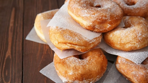 4. Fríe las orelletes en aceite a 190 °C y espolvorea con azúcar, miel o sirope.