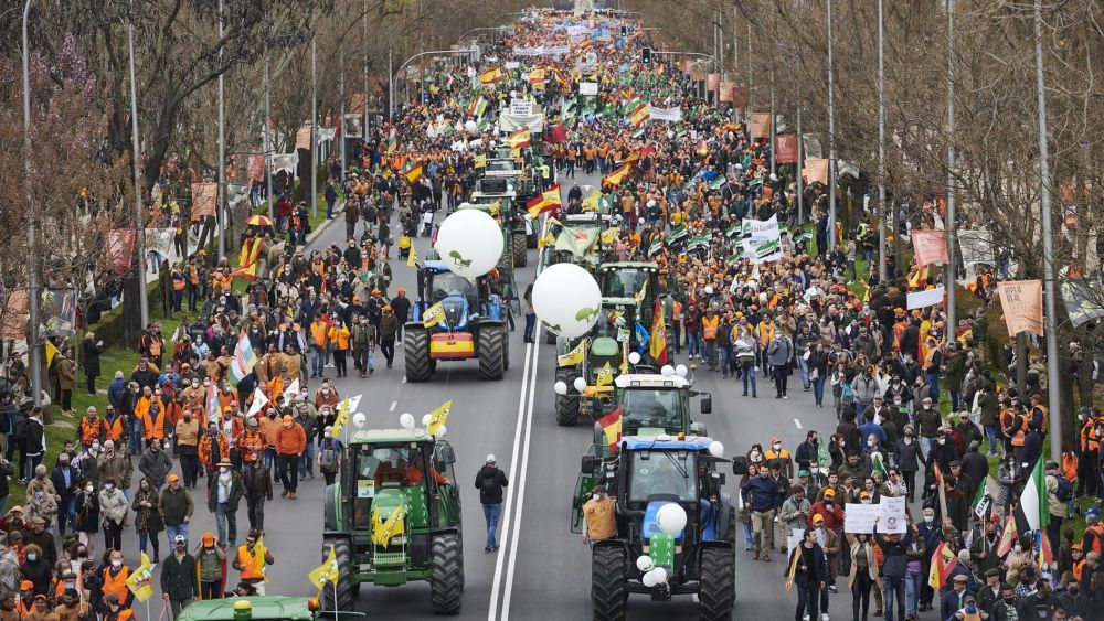 La manifestación "20M Juntos por el campo" ha convocado 400.000 seguidores según los organizadores, 150.000 según la Delegación de Gobierno; y ha unificado las voces de agricultores, ganaderos, cazadores, regantes y criadores de toro de lidia. Con más 1.500 autobuses llegados de toda España, la manifestación ha recorrido la Castellana y el Paseo del Prado hasta llegar a la Plaza de San Juan de la Cruz, enclave del Ministerio para la Transición Ecológica y el Reto Demográfico.