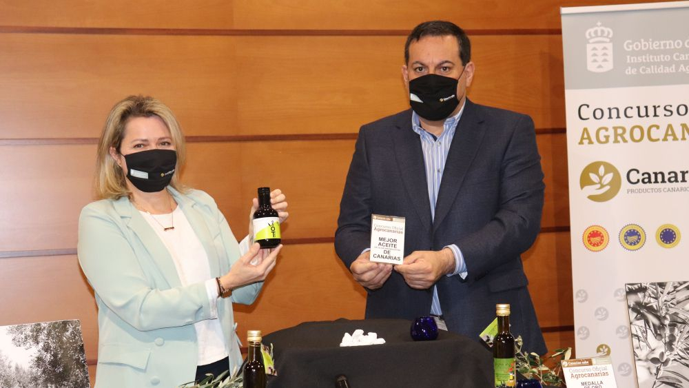 El aceite de la selección koroneiki-arbequina-picual, de la marca Oleoteide, elaborado por la Sociedad Cooperativa Cumbres de Abona (Tenerife), ha sido elegido la mejor producción del Archipiélago en el Concurso Oficial de Aceite de Oliva Virgen Extra Agrocanarias 2021 que organiza la Consejería de Agricultura, Ganadería y Pesca del Gobierno de Canarias a través del Instituto Canario de Calidad Agroalimentaria (ICCA).El certamen, que contó con 12 muestras pertenecientes a 10 almazaras de Tenerife, Gran Canaria, La Palma, Fuerteventura y El Hierro, tiene el objetivo de promocionar la comercialización del aceite producido en las Islas y dar a conocer entre los consumidores su alta calidad.Por categorías, la Medalla de Oro se otorgó a la marca Teguerey Arbequina-Hojiblanca-Picual, de Fuerteventura, elaborado por Luis Hernández, quien también recibió la Medalla de Plata a la variedad arbequina-hojiblanca. En el apartado de distinciones especiales, la ‘Mejor imagen y presentación’ recayó en la marca Lercaro, Tenerife, elaborado por José Antonio Acosta.El fallo del jurado fue emitido por la consejera de Agricultura, Ganadería y Pesca del Ejecutivo regional, Alicia Vanoostende, quien agradeció “El esfuerzo y el gran trabajo de todos los participantes” y destacó que uno de los objetivos de la Consejería es el de fomentar la economía en las zonas rurales y mejorar la renta de los agricultores: “Para poder conseguirlo es necesario fomentar el producto local a través de diferentes líneas de trabajo entre las que destacan los premios Agrocanarias, que ponen en valor al producto local”.La consejera estuvo acompañada por el director del ICCA, Basilio Pérez, quien mostró su satisfacción por la recuperación de este concurso, que no pudo celebrarse en 2020. En esta línea, señaló que “En los últimos 10 años, ha ido aumentando el cultivo del olivo en las Islas con cada vez más almazaras, diversificándose así la agricultura del archipiélago”.