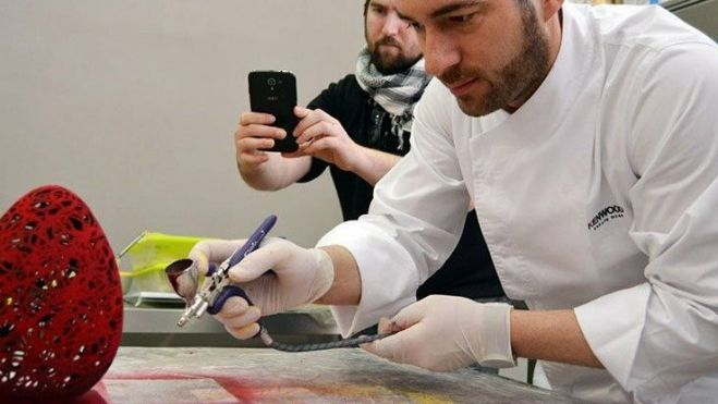serviría a las mil maravillas para cupcakes o magdalenas, ya no es un ingrediente lejano –afirma-. Basta con acudir a las tiendas on-line y contar rápidamente con él para restauración o para los hogares; en definitiva, contribuimos todos a una culturización de la faceta dulce, a la que también se sumaron las corrientes de renovación y una formación más de fundamento de los pasteleros, por supuesto”.El virtuoso en escultura repostera y gastronómica hunde el análisis en sus propias raíces profesionales. “Estudié poco, esa es la verdad, pero eso me dio oportunidad de formarme como pastelero de la calle, por decirlo de algún modo”.Por eso, Pallás siempre está dispuesto a abrir otras perspectivas de trato al producto y de lo que realmente el repostero quiere expresar en cada momento. “