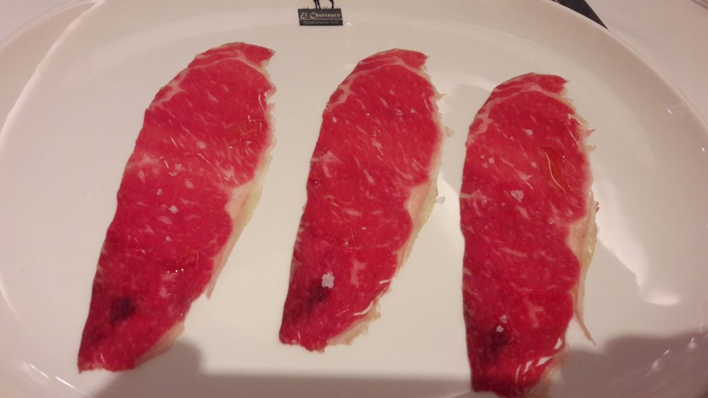 carpaccio de entrecot madurado de 180 días con escamas de sal y aceite royal; también un