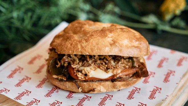 Por otro lado, el bocadillo preparado por La Mercantina, ubicado en el madrileño mercado de Tirso de Molina, se elabora con pierna de cordero marinada y asada al horno y se presenta en un mollete con hierbas frescas, cebolla morada, pepinillo encurtido y salsas de mayo-lima y habaneros y zanahoria.