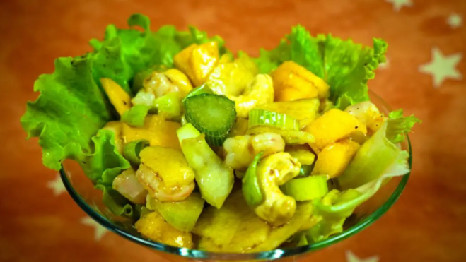 Ensalada de mango con gambas e hinojo, original e ideal para el verano