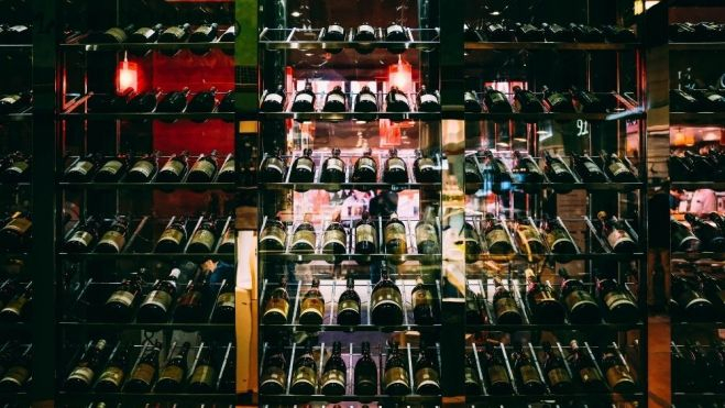 Botellas de vino en una estantería Pexels