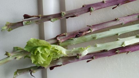 El interés culinario de los tallos de lechuga cuando entran en modo floración, lo descubrí siguiendo las referencias de las tendencias de la cocina francesa. Ya no es solo cuestión de, por ejemplo, utilizar las flores comestibles como ingrediente y no como elemento decorativo, de poner en valor el producto de proximidad, de calidad, ecológico, sino también de reinventar la manera de consumirlo. Así pues, de lechugas que normalmente son desechadas ya que, al entrar en floración, las hojas se vuelven más duras y amargas, pasamos a aprovechar el centro de la planta, quedarnos con las partes más tiernas, cocinarlas al vapor, retirar la película que envuelve al tallo y utilizar el centro de los tallos. Estos “corazones” están llenos de frescura crocante, verde y natural que, muy en el fondo, puede recordar a una lechuga con mucha más intensidad en el paladar que va del dulzor fresco a un punto ligero de amargor.