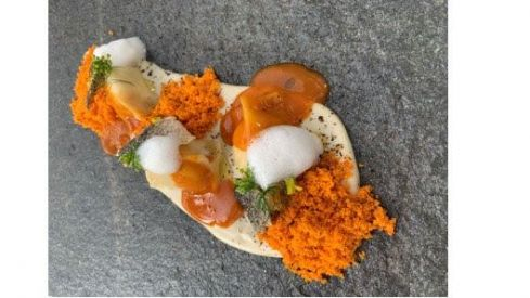 Albert Raurich en Dos Palillos* también en la capital catalana y junto a grandes de la cocina peruana (su país de origen) como Astrid&Gaston, Toshi o Central antes de cruzar el charco. Roque también se decanta eminentemente por el pescado pero conjugado por su bagaje culinario con boniato, boquerones y bivalvos sobre una base pintada de ají amarillo y puntos de aguacate, salicornia, pepino y algas crujientes.