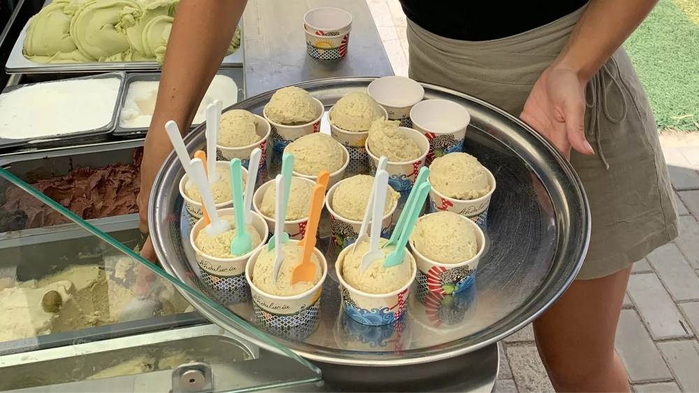 “Ella nos propuso este reto, y a nosotros nos gustan mucho los desafíos, hacer cosas diferentes”, explica mientras da a probar a todo el que pasa por delante de su mostrador los distintos sabores de sus helados. Las caras de quienes prueban un helado de aceitunas lo dicen todo. “Para nosotros, el helado es una pasión y llevarlo a otros niveles es nuestro objetivo”, asegura.