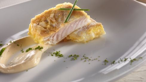 A la espera de retomar la normalidad, a medida que todas y todos vemos la mejora y caminamos lentamente por esta vida de fases, no debemos olvidar la buena alimentación en casa. Por ello, el equipo de cocina del restaurante Melvin by Martín Berasategui, ubicado en el hotel Las Terrazas de Abama, en el sur de Tenerife, mantiene su propuesta de ofrecer menús innovadores, saludables y sabrosos y propone tres nuevas recetas con las que, sin duda, cualquier familia elevará el nivel de su cocina. En esta ocasión os traemos la receta de merluza rebosada con mahonesa de ostras.Ingredientes: merluza rebozada: 1 lomo de merluza, 2 dientes de ajo, huevo batido, sal. Mahonesa de ostras: 150 g de ostras, 18 g de perejil, 150 g de aceite de oliva, jugo de limón, jugo de las ostras.Elaboración:Para la merluza rebozada:Deshuesar la merluza hasta preparar unos lomos hermosos sin piel. También podemos pedir que nos los preparen así en la pescadería.Sazonar los lomos de merluza y freírlos minuto y medio por cada lado en abundante aceite caliente con ajos, con los tacos sólo pasados por huevo batido, sin necesidad de enharinarlos.