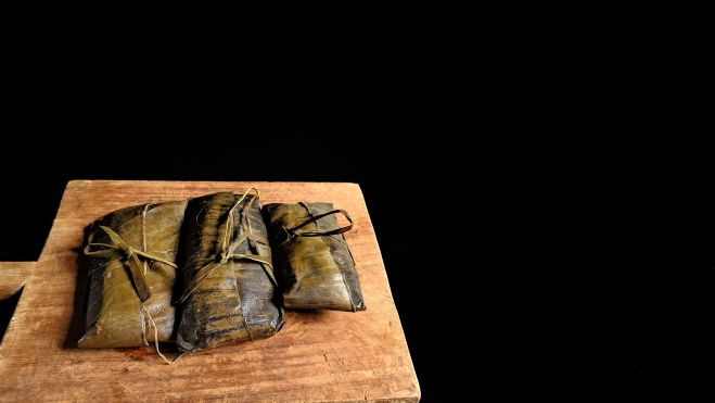 tamal negro guatemalteco, tradicional de los hogares. La costumbre consiste en degustarlos acompañados de pan francés y unas gotitas de limón.
