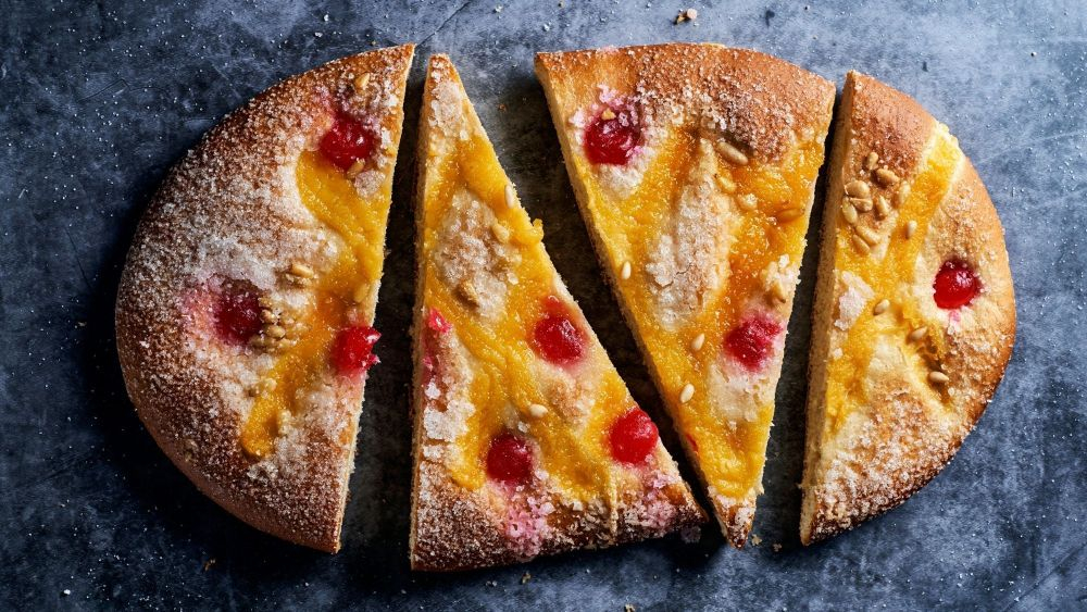 La Mejor Coca de Sant Joan tradicional de fruta confitada y piñones se elabora en el Forn Gil de Barcelona. Se ha valorado la pasta (color, sabor, esponjosidad, masticabilidad), el aspecto exterior (distribución de frutas, piñones y azúcar, color), la cocción interior y la cocción exterior // Dirección: c/ Navas de Tolosa, 263; c/ Bofarull, 49; y Gran Vía de les Corts Catalanes, 942.