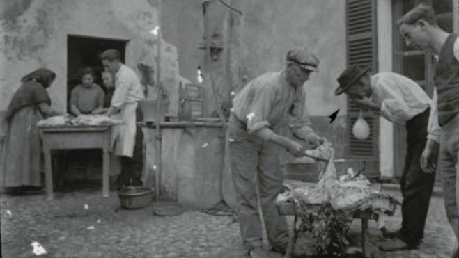 La sociedad mallorquina ha sido siempre una comunidad muy ligada al cerdo, de él provienen la mayoría de productos por los que conocemos la gastronomía balear. El historiador y gastrónomo Antoni Tugores recoge que en el siglo XIV se había popularizado la matanza del cerdo y que ya en el siglo XVI encontramos documentos que atestiguan la sobrasada, aunque diferente a la actual, pues no se utilizaba aún pimientón y su color era el gris. Aun así, cabe matizar que ya entonces era una práctica del ámbito rural. Por ejemplo, se sabe que en 1747 apenas se sacrificaban cerdos en el matadero municipal de Manacor, porque la mayoría de puercos conocían al matarife en las casas de pueblo o en las fincas con ganado, las llamadas possessions.