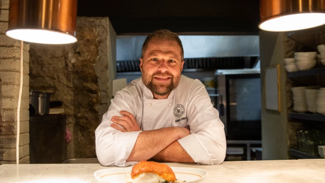 "Antes se enharinaba y se freía. Esto lo hemos cambiado, pensando en que sea apto para personas celíacas. Sólo se marca en la sartén y se termina en el horno", apunta Oltra, y aboga por las técnicas más saludables que marcan la cocina actual.